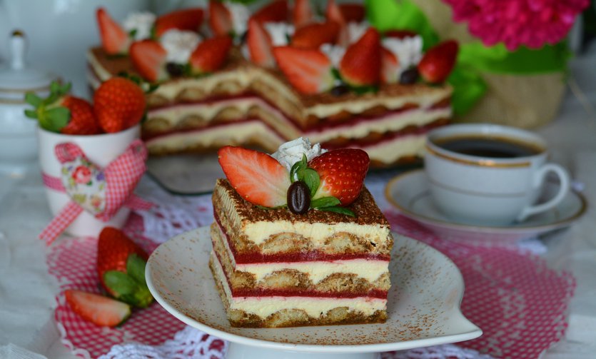Tiramisu z truskawkowym musem