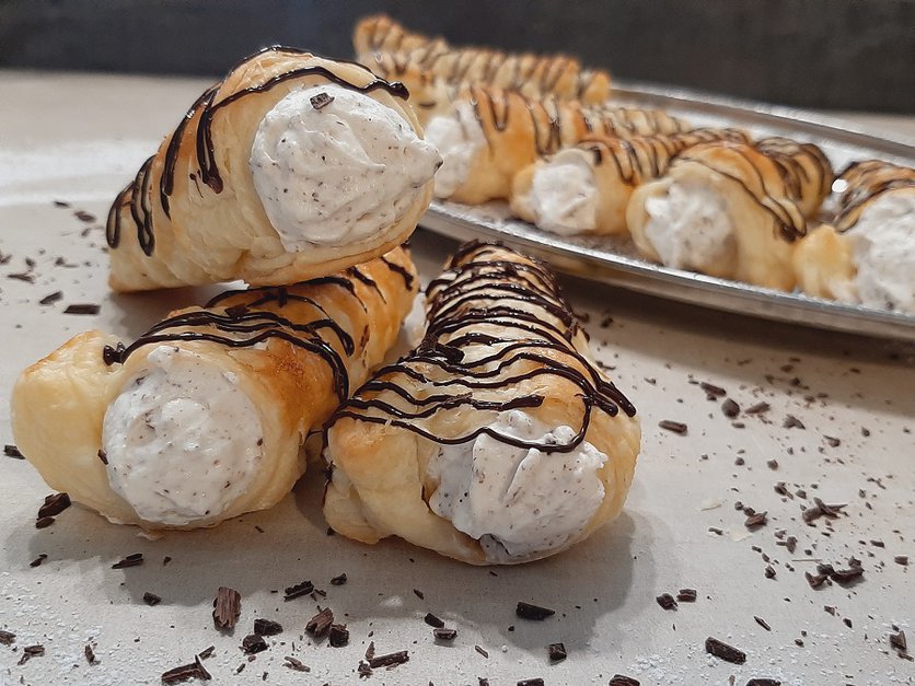 Rurki z ciasta francuskiego z kremem straciatella