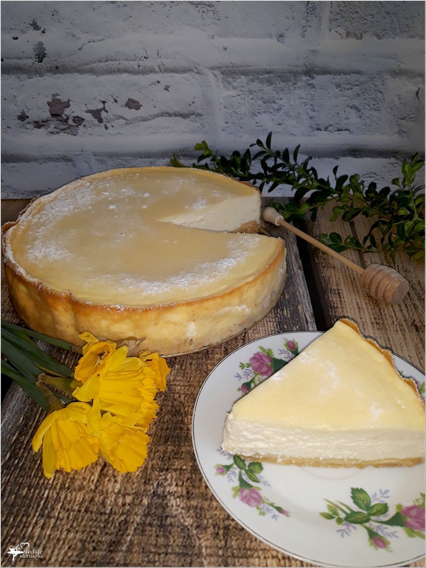 Sernik z lawendowo miodową nutą na kruchym miodowym spodzie