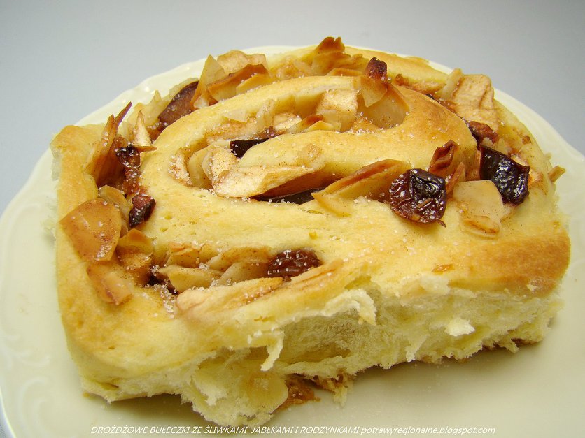 DROŻDŻOWE ZAWIJANE BUŁECZKI ZE ŚLIWKAMI JABŁKAMI RODZYNKAMI I MIGDAŁAMI