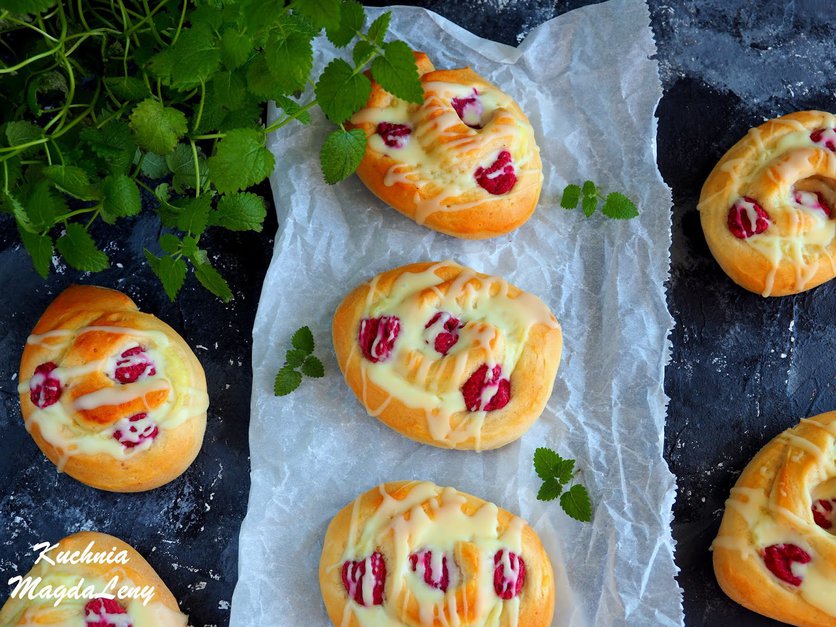 Drożdżówki z budyniem i malinami