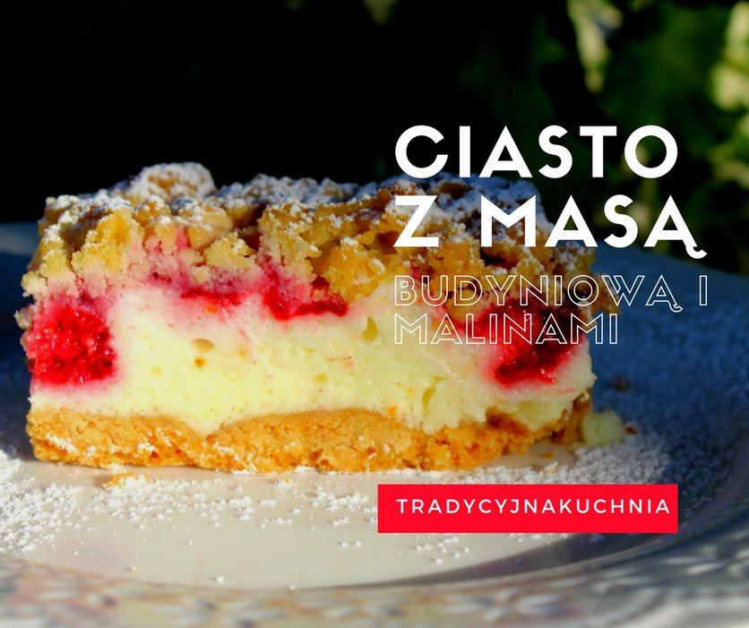 Ciasto z masą budyniową i malinami