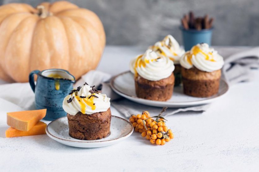 Muffiny dyniowe z kremem i sosem z rokitnika