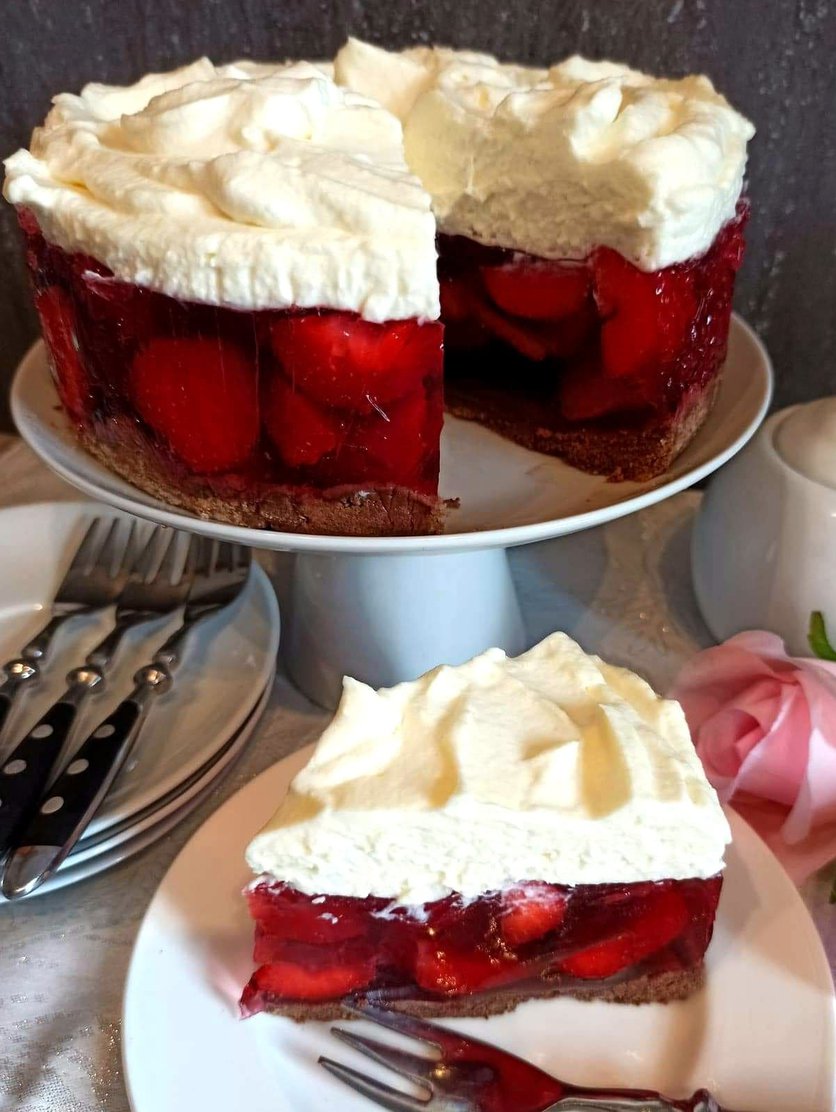 ciasto z truskawkami i budyniową pianką