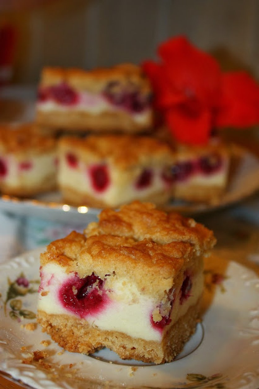 Kruche ciasto z pianką i malinami