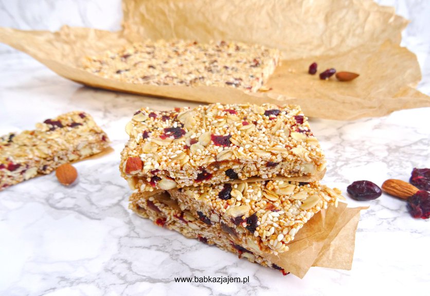 Batoniki z amarantusem i żurawiną