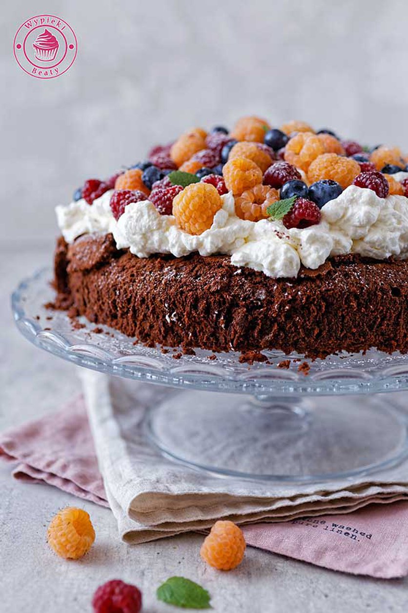 Przepis na bezglutenowe czekoladowe ciasto chmura z bitą śmietaną i owocami