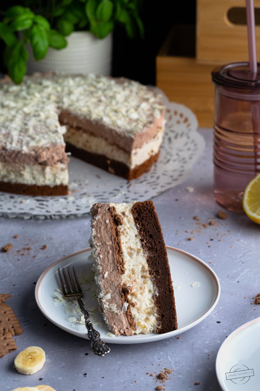 Ciasto murzynkowe z musem bananowym i kakaową pianką
