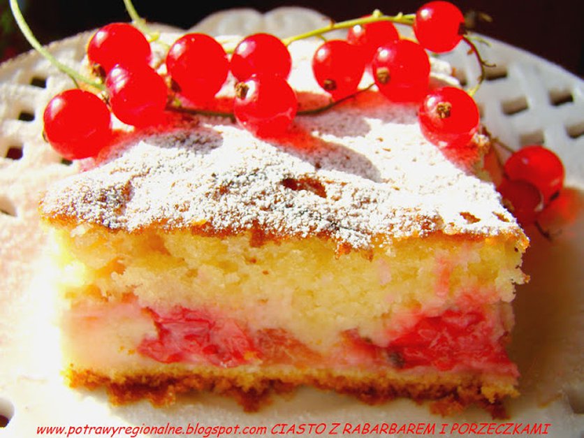 CIASTO Z RABARBAREM I CZERWONĄ PORZECZKĄ NA MAŚLANCE