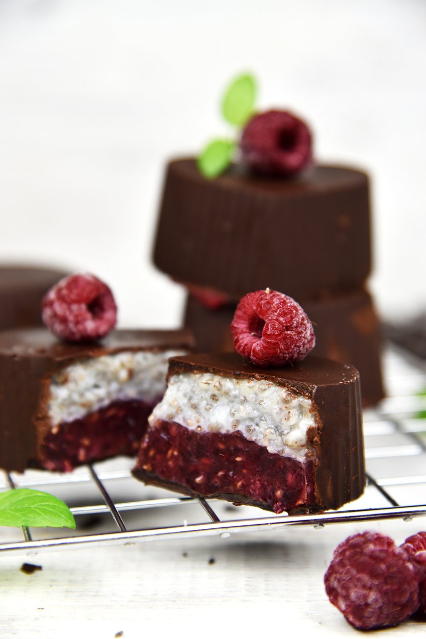 Fit czekoladka ptasie mleczko z chia i malinami