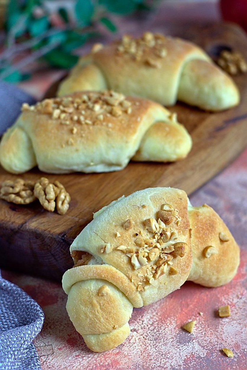 Bananowe rogaliki drożdżowe z jabłkiem