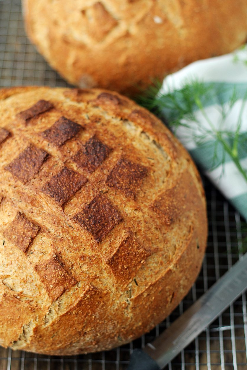 Chleb z koperkiem i serkiem wiejskim (na drożdżach)