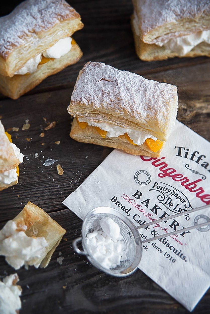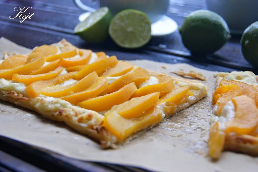 Ciasto francusie z brzoskwiniami, serkiem i limonką
