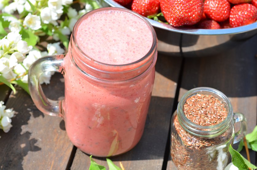 Koktajl z truskawkami, kefirem i siemieniem lnianym