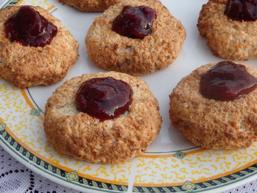 Ciasteczka koksowo-migdałowe z dżemem