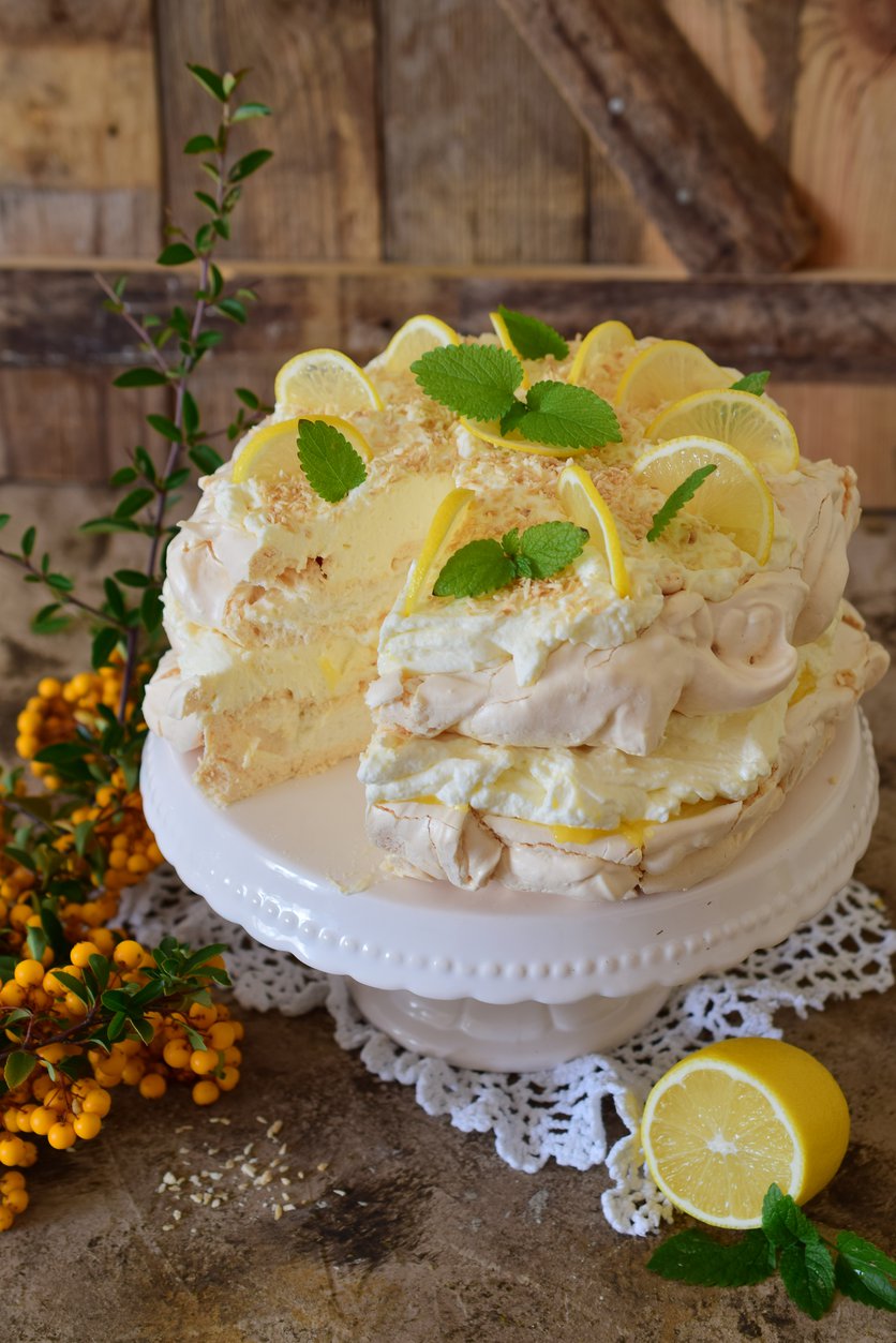 Torcik bezowy z kremem śmietanowym i lemon curd