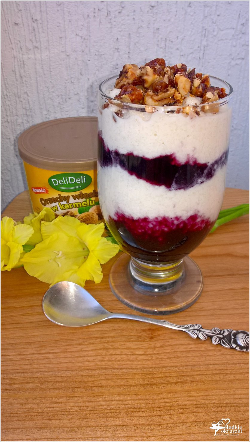 Szybki jagodowo-ryżowy pudding z karmelowymi orzechami