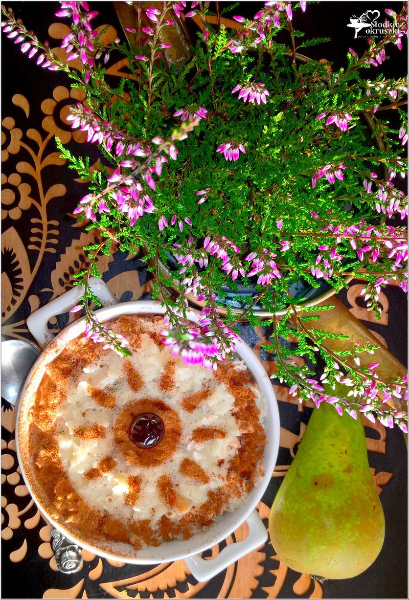 Zapiekany pudding ryżowy z gruszką i cynamonem