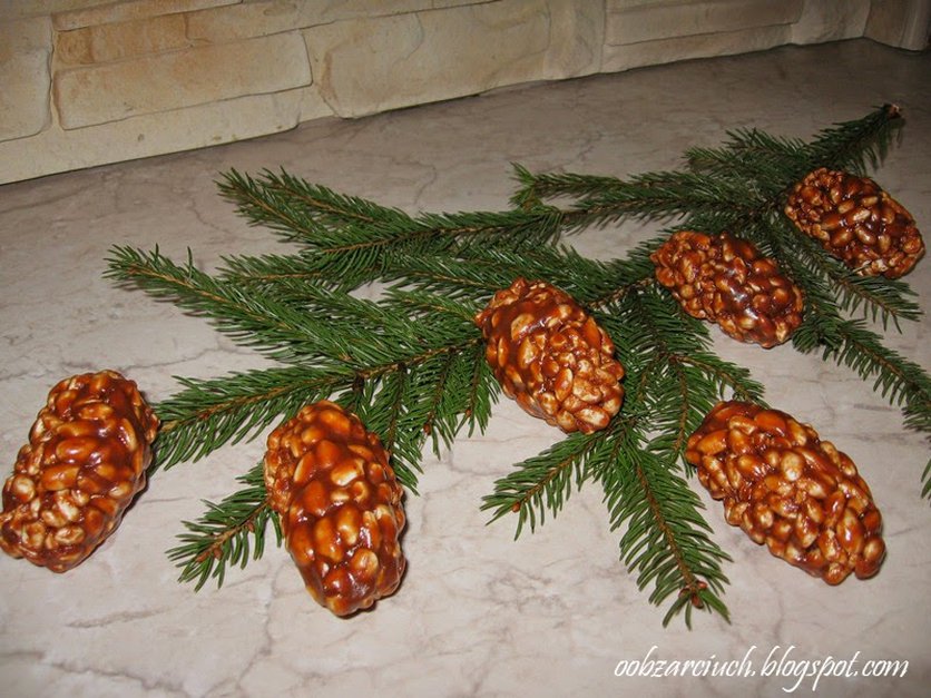 Szyszki z ryżu preparowanego i krówek.