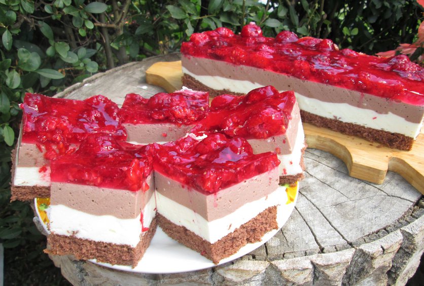 Sernik na zimno z malinami dwu smakowy- łatwy i pyszny