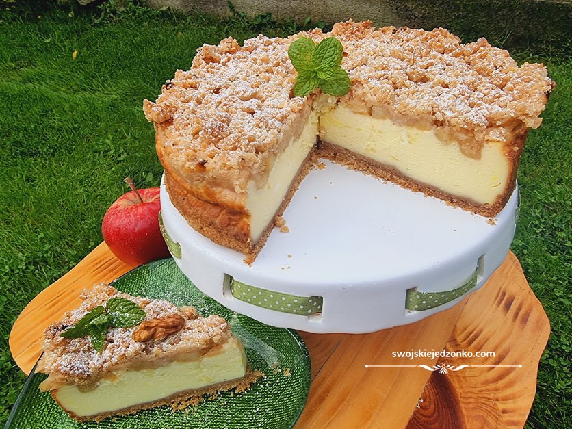 Sernik z prażonymi jabłkami i cynamonową kruszonką