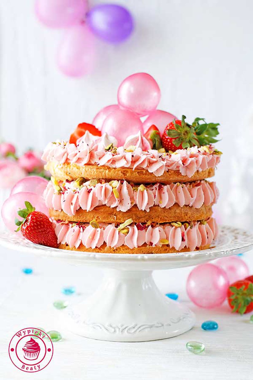 Tort z kremem truskawkowym