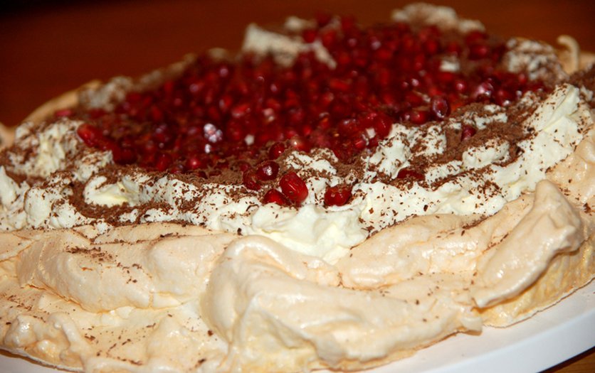 Tort bezowy. Z pysznym kremem i granatem. Spróbuj zrobić bezę!