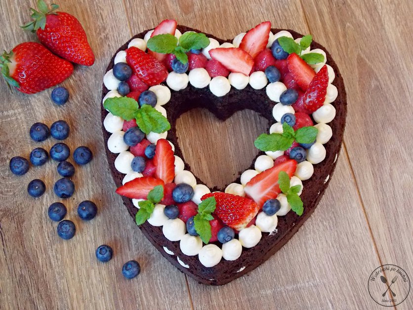Czekoladowy torcik z kremem szampańskim i truskawkami