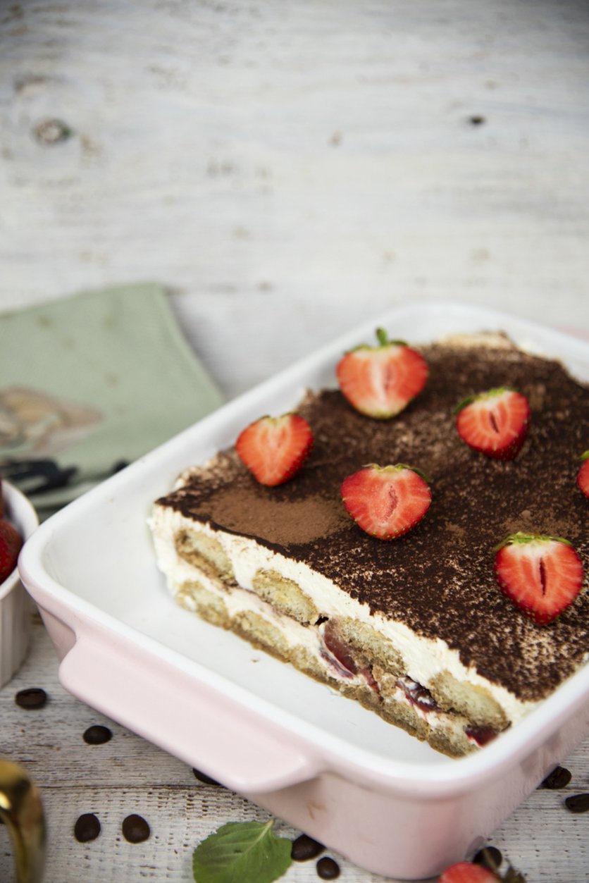 Ciasto tiramisu z truskawkami