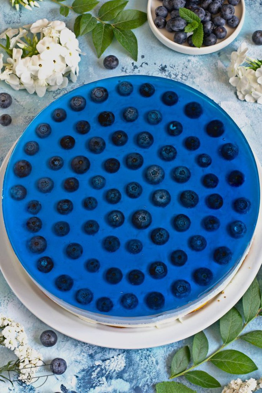 Sernik na zimno z galaretką i borówkami