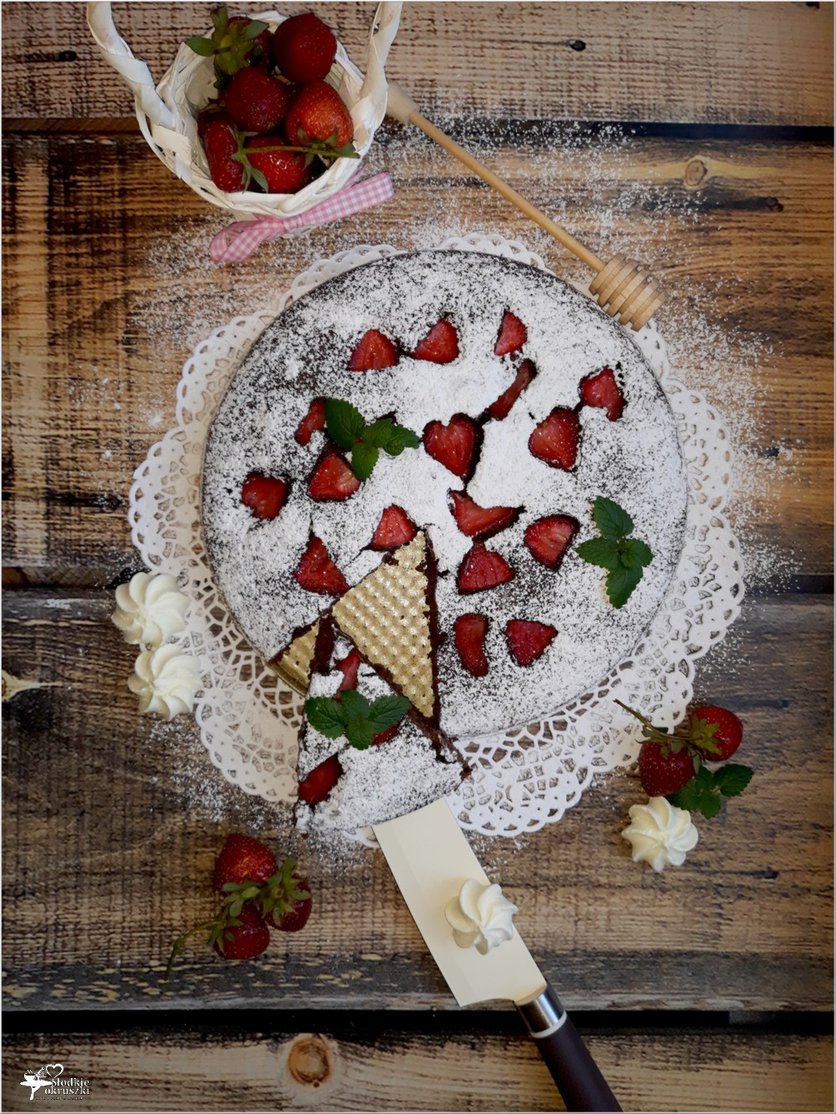 Proste ciasto czekoladowe z truskawkami