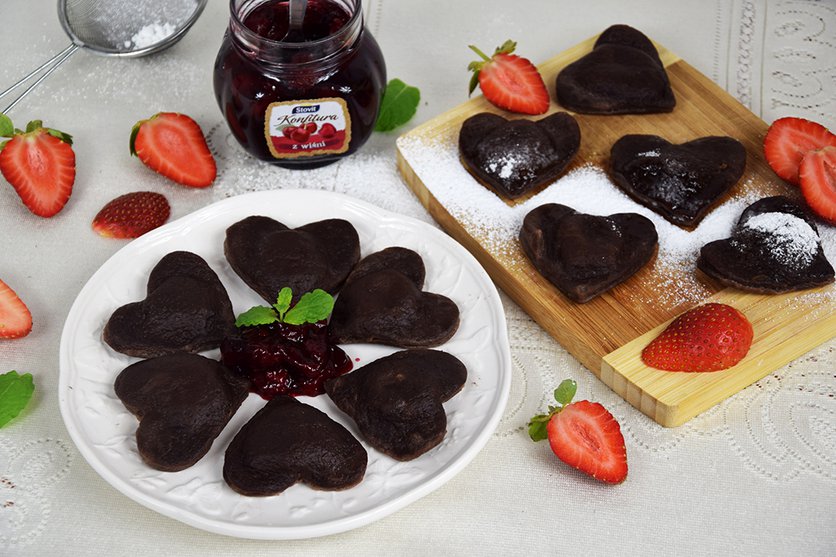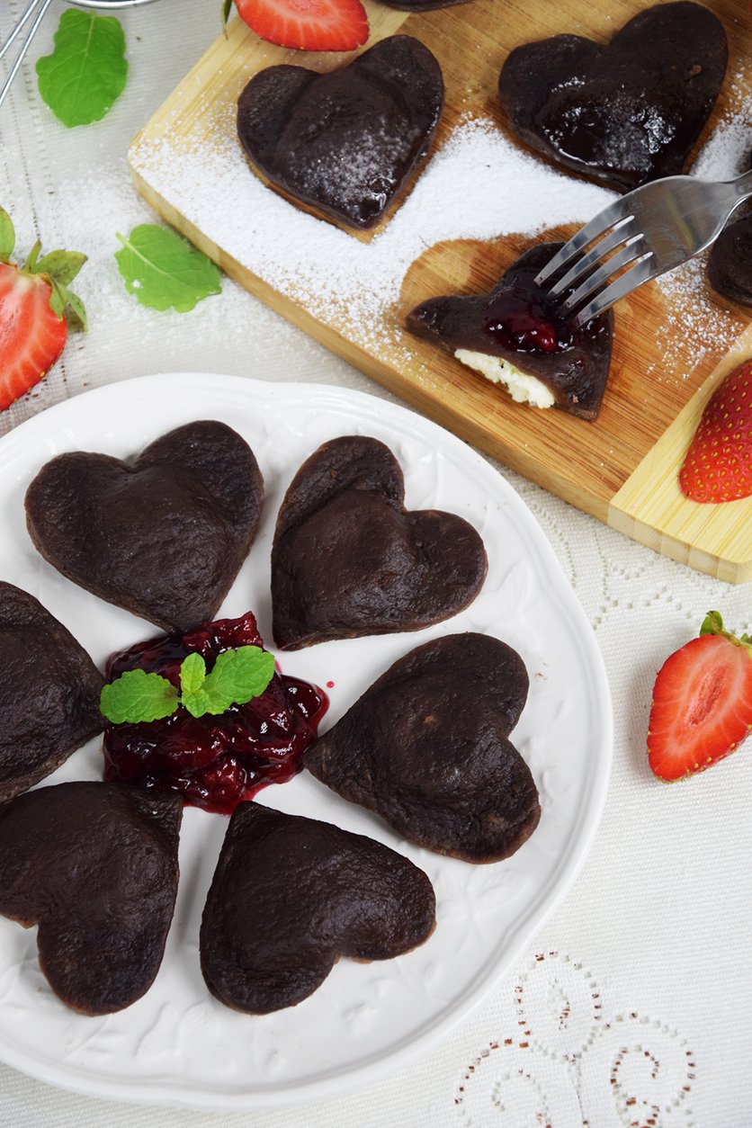 Walentynkowe czekoladowe ravioli z białym serem