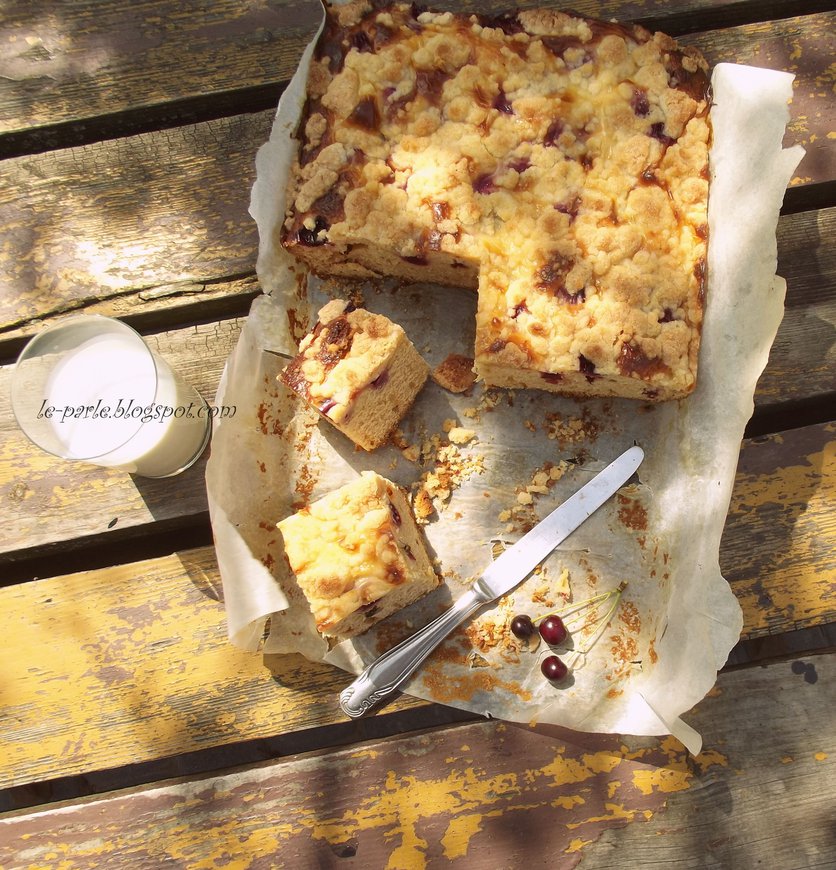 Drożdżówka z wiśniami i migdałową kruszonką