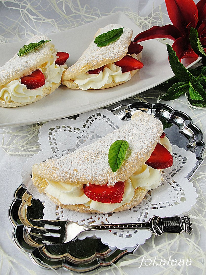 biskwity z truskawkami i bitą śmietaną