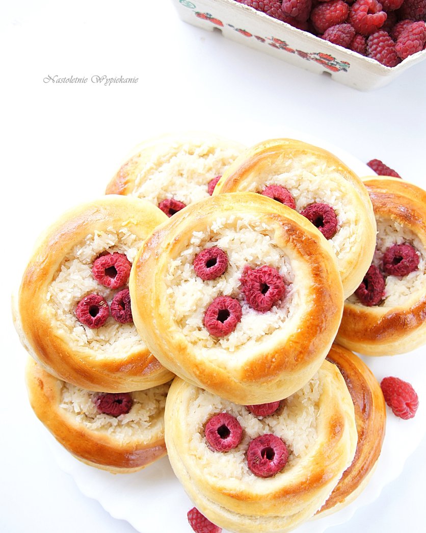 Kokosowe gniazdka z malinami