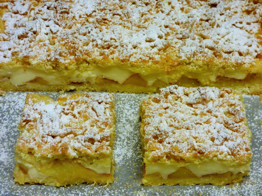 Kruche ciasto z jabłkami i budyniem