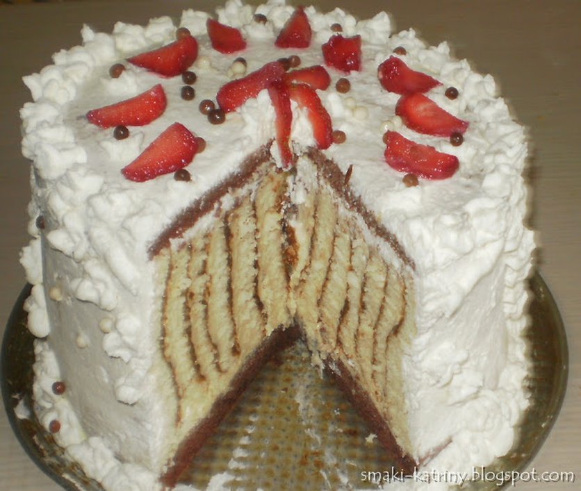 wyjątkowy tort inny niż wszystkie, prążkowany poprzecznie, zwijany.