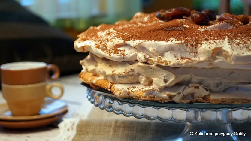 Bezowy tort dacquoise z daktylami i orzechami