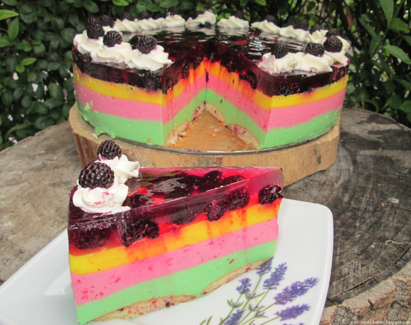 Tęczowy sernik z czarnymi malinami-bez pieczenia