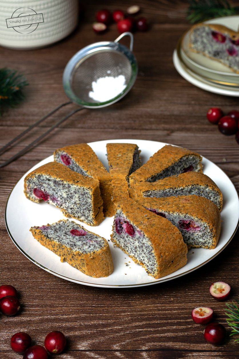Świąteczny sernik pomarańczowy z żurawiną na piernikowym spodzie