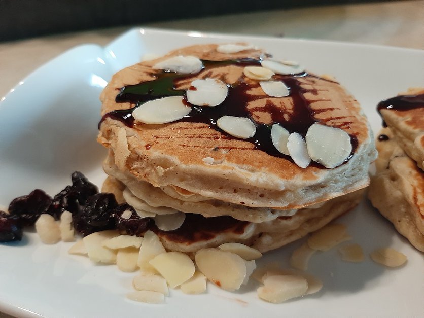 Migdałowe pancakes z żurawiną i rodzynkami