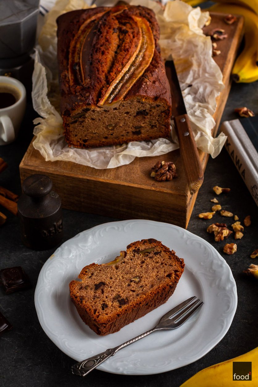 Chlebek bananowy z palonym masłem, orzechami i czekoladą