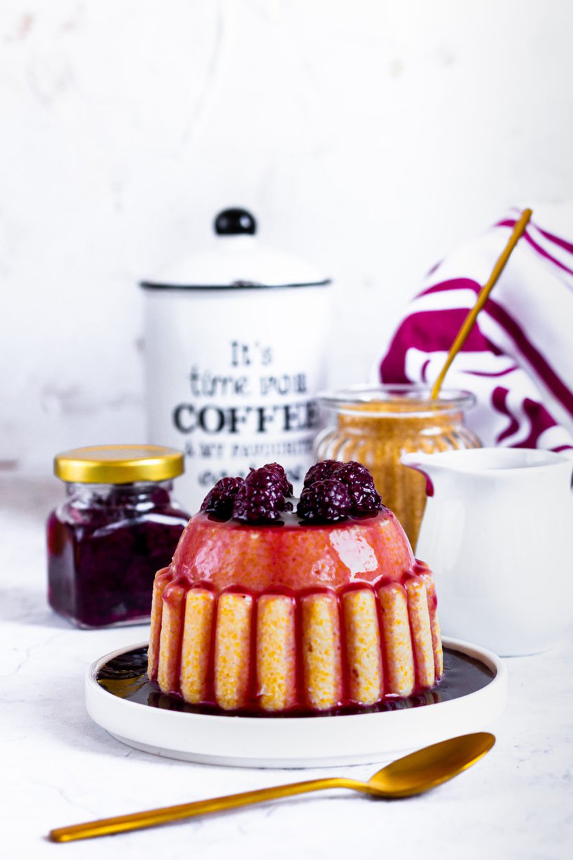 Pudding z kaszy kukurydzianej z sosem jeżynowym
