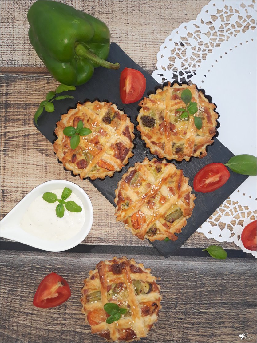 Mini tarty z warzywami i kiełbasą żywiecką