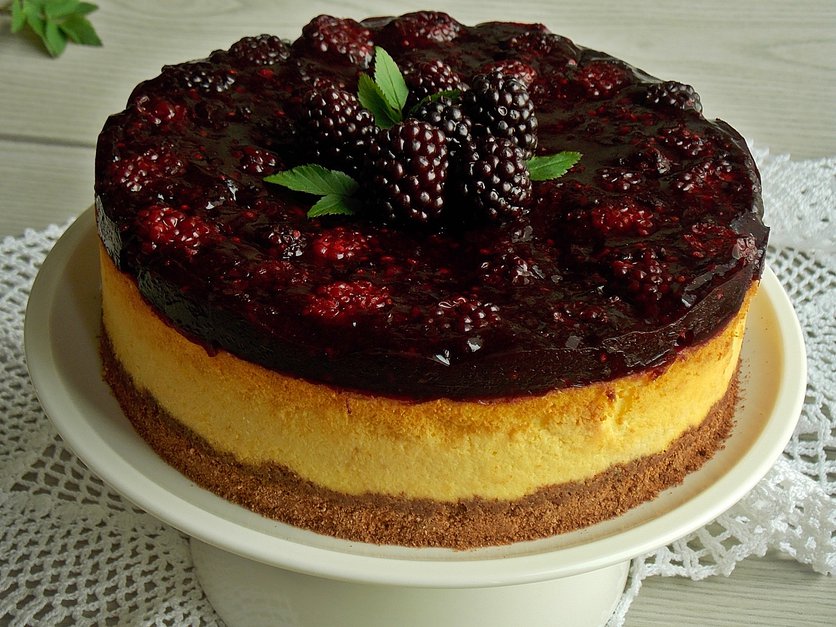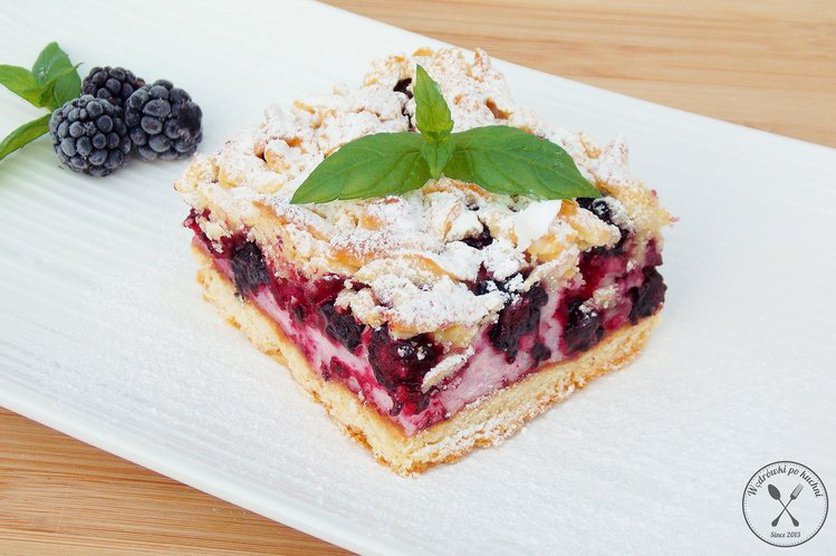 Sernik na maślanym spodzie z frużeliną jeżynową