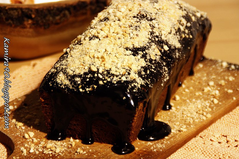 Piernikowy keks z polewą czekoladową i orzechami