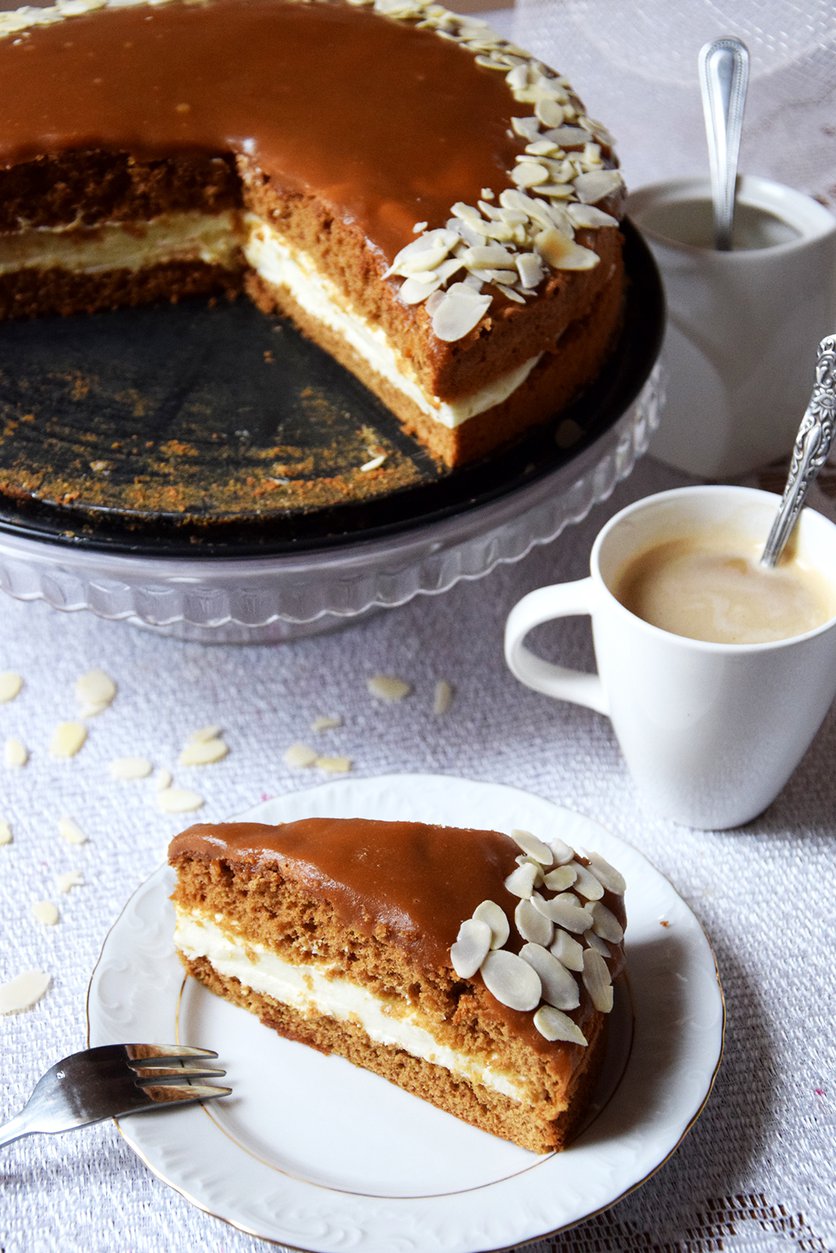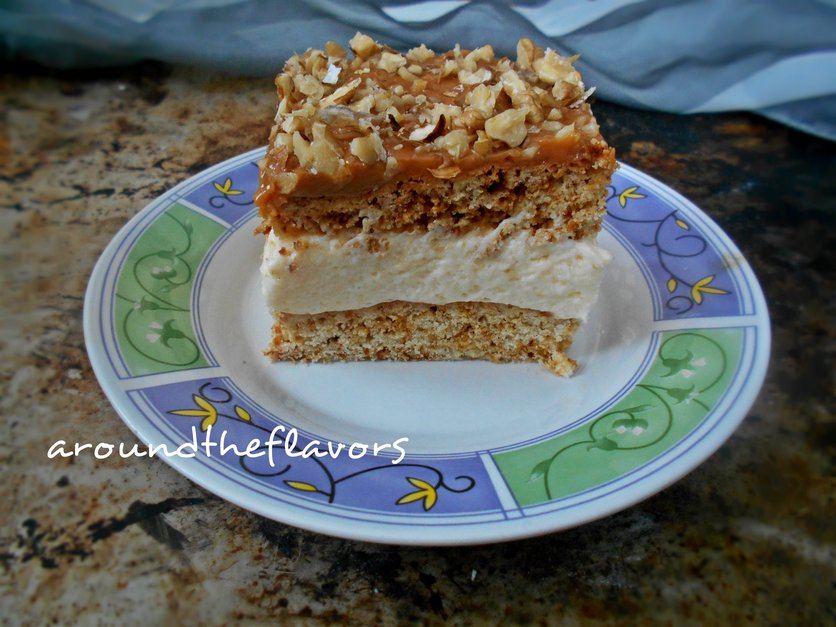 CIASTO Z MASĄ KRÓWKOWĄ, ŚMIETANĄ I ORZECHAMI