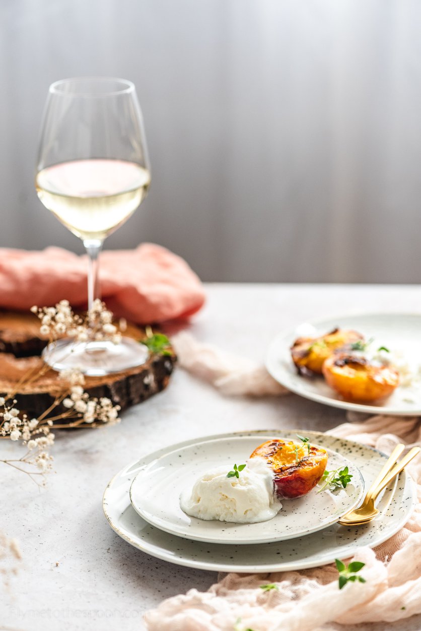 Lody z białym winem i grillowane brzoskwinie z tymiankiem