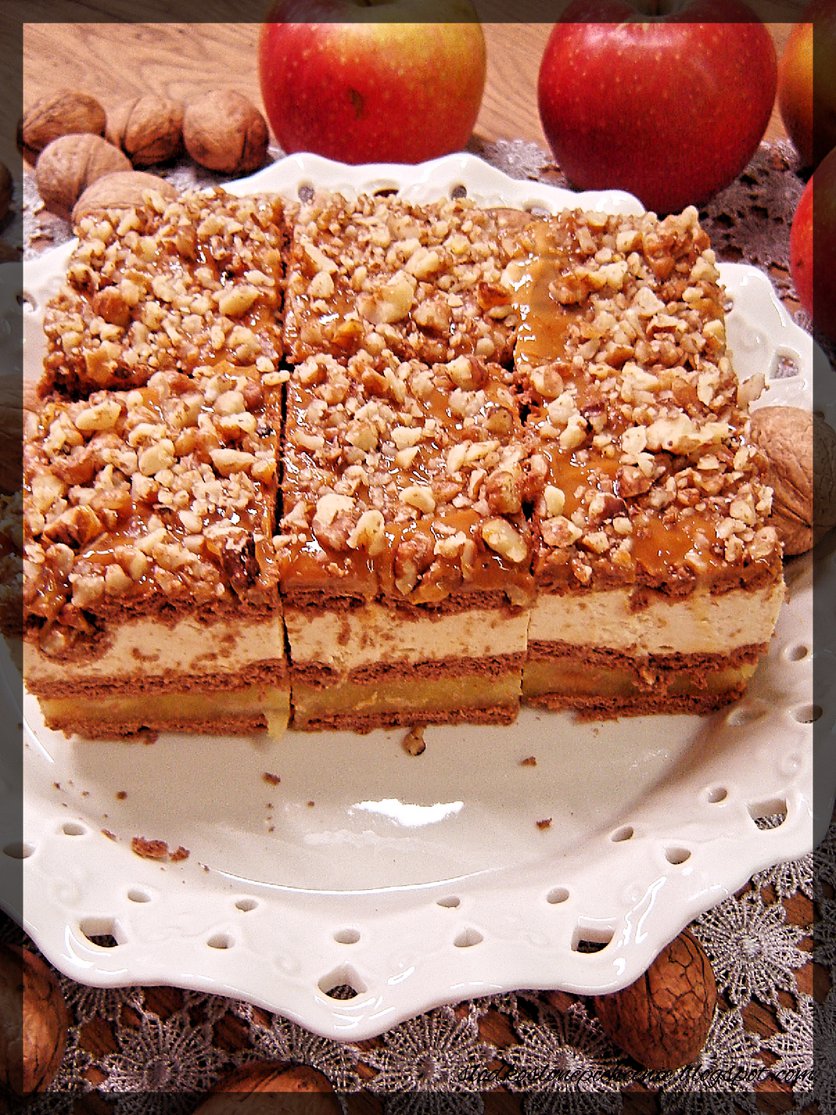 Ciasto jabłkowe z budyniem kajmakowym i orzechami (bez pieczenia)