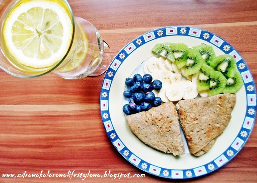 Naleśniki z mąki razowej z nadzieniem serowo-kokosowym z owocami